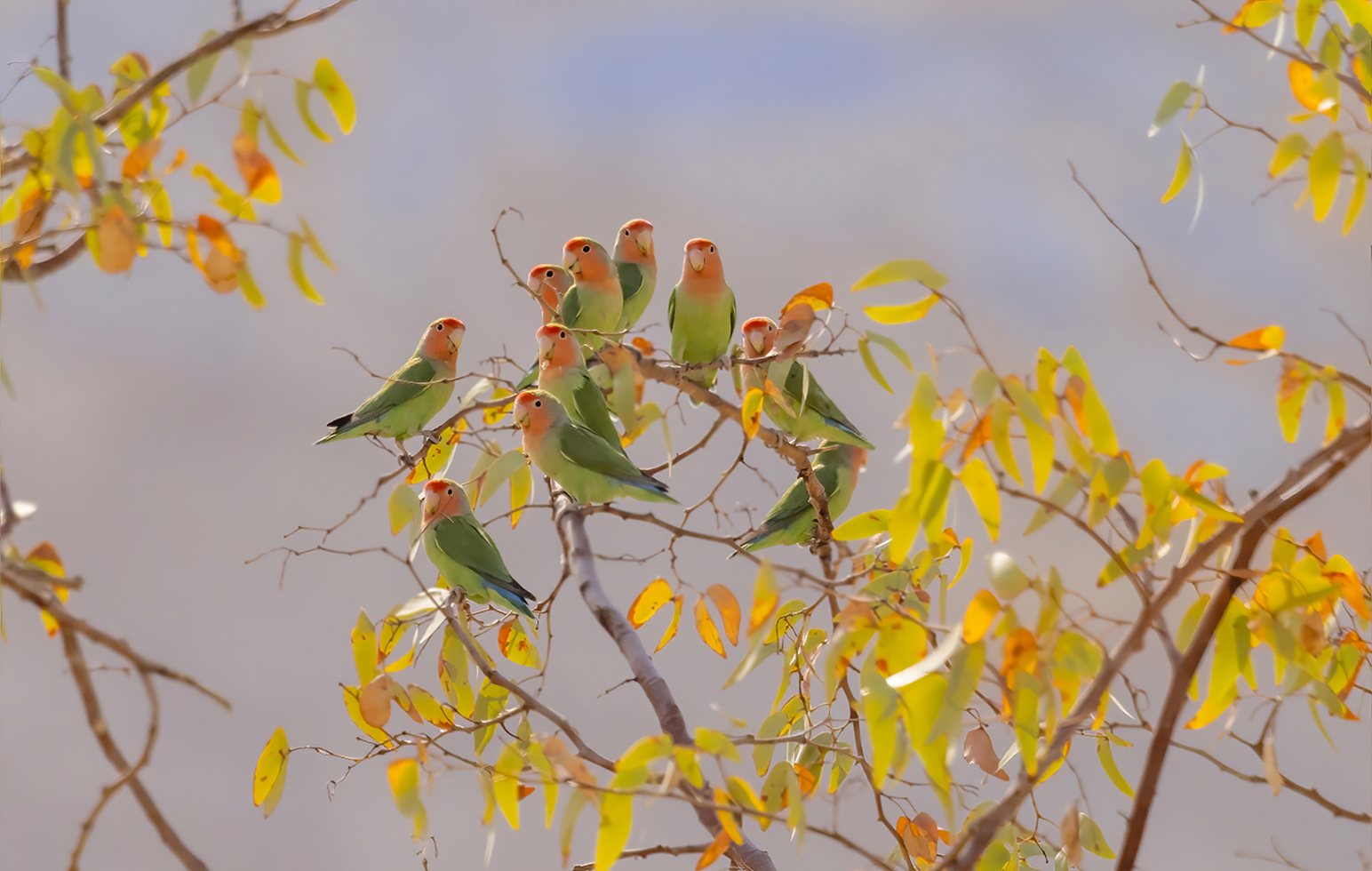 One of my favourite as it is called Rosy-cheeked Lovebird which is such a pretty name for these pretty birds!